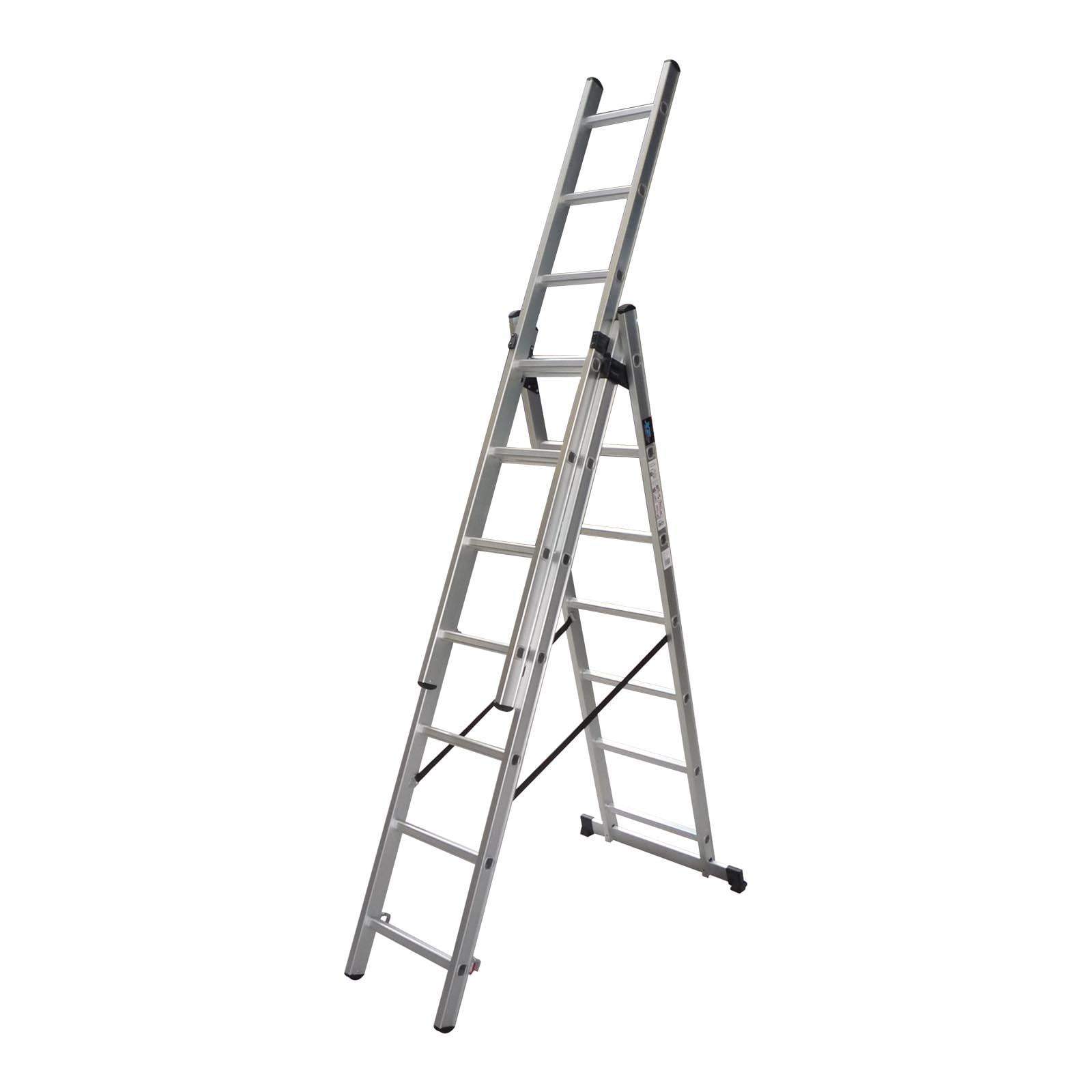 Lahko se uporablja kot enojna, dvojna ali trojna raztegljiva in samostoječa lestev. V položaju stopničaste lestve ponuja povečanje dosega z razširitvijo gibljivega dela. Zatič za pritrditev posameznih delov lestve.