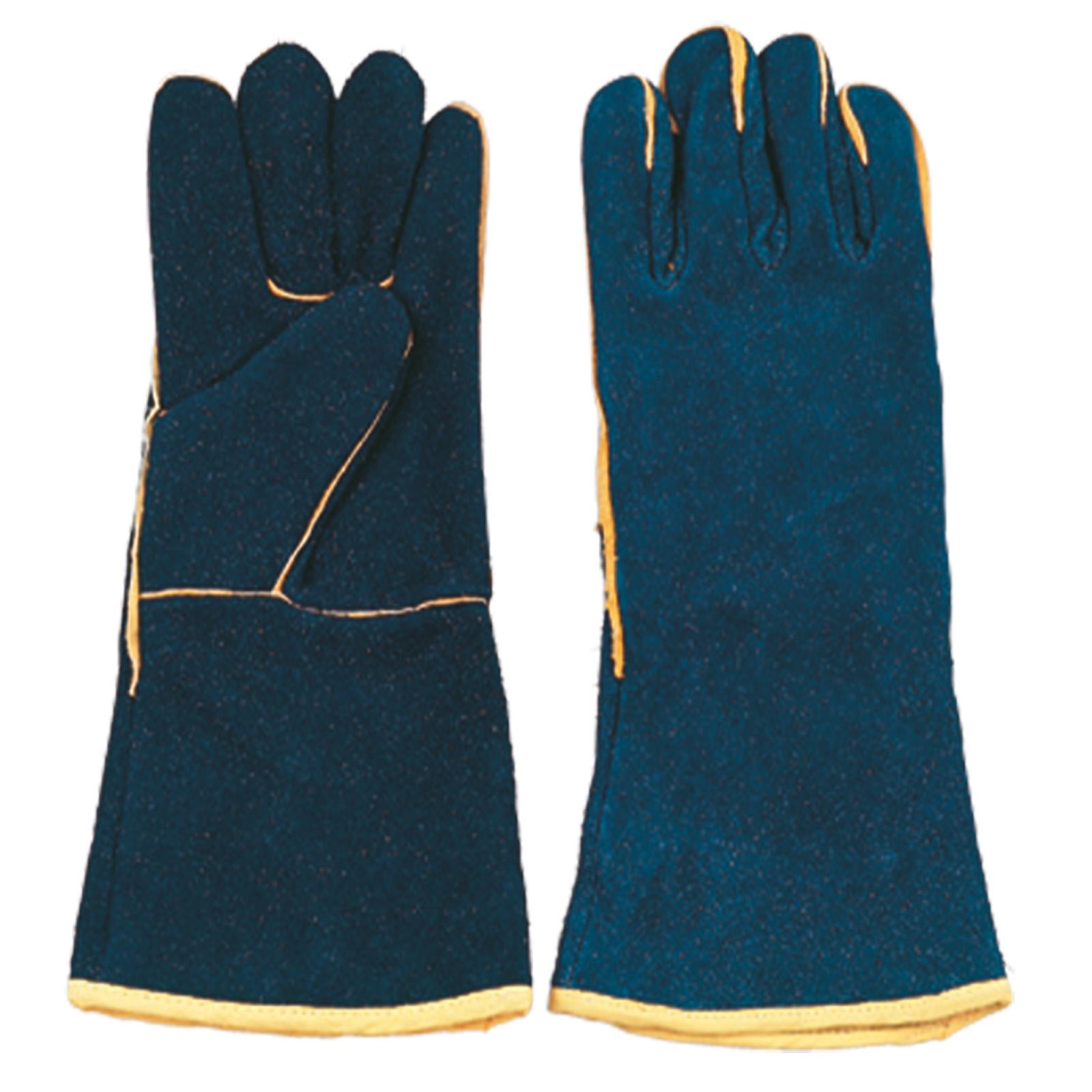 Povsem usnjene rokavice iz črnega govejega usnja, dolžina 35 cm, pokriti šivi, kvalitetna bombažna podloga, atest za varjenje.